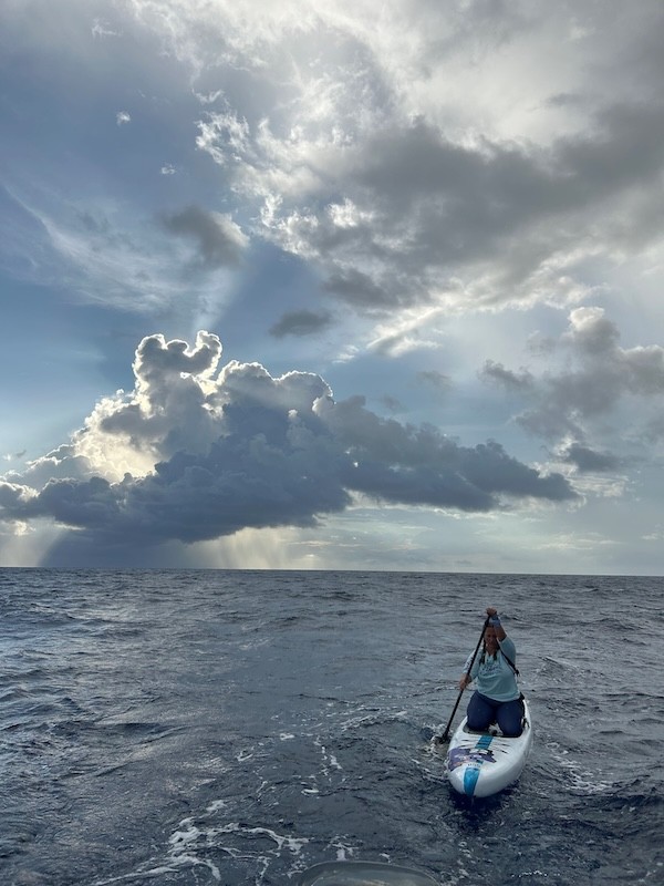 To help cover their $2,000 per-paddler fundraising required goal, Garrett and McGaw rallied their community through grassroots efforts—from line dancing nights to a cornhole tournament. Weeks before the event, however, she ruptured a tendon in her foot and was required to wear a medical boot. Cleared only days before launch, she had to paddle on her knees. Things worsened when their support boat broke down just before departure and their support team member faced flight delays, arriving just hours before launch. With no time to rehearse, Garrett and McGaw joined a different captain’s boat. “The seas were rough—five-foot swells made it almost impossible to paddle,” she says.