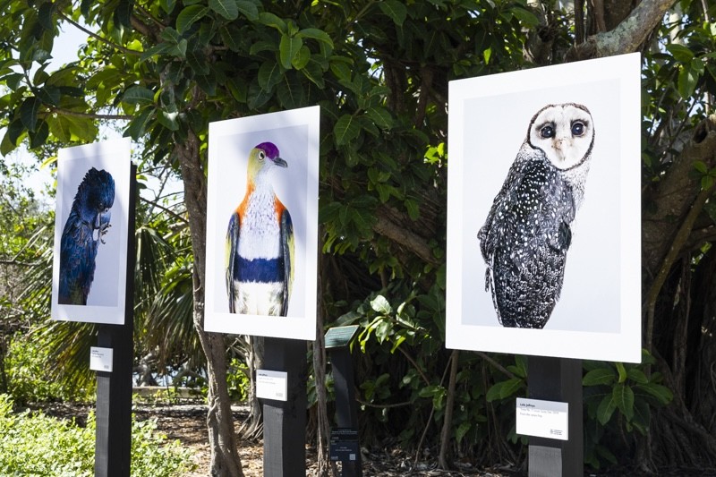 Outside in the campus’s gardens, the photographs are printed onto aluminum mounts and nestled amongst the dense flora for which Selby Gardens is best known for, blurring the lines between art and nature. “The artwork itself is very compelling, but there is something about the combination of the work and the environment that makes for an incredibly engaging experience,” says Dr. David Berry, vice president of visitor engagement and chief museum curator at Selby Gardens.