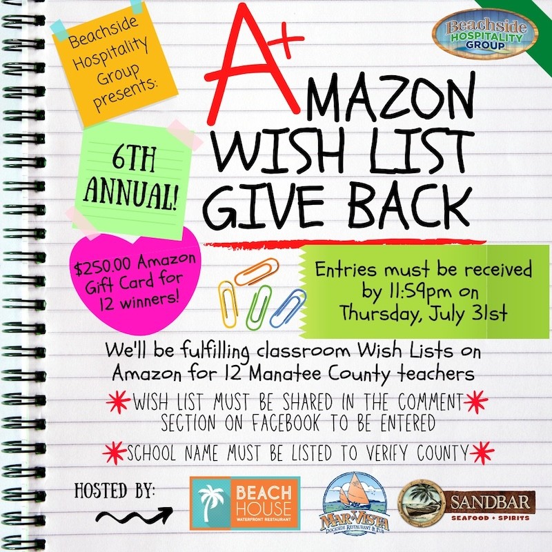 As a new school year approaches, Beachside Hospitality Group is proud to continue its commitment to supporting local educators for the sixth year in a row. On July 17, the company launched its annual Amazon Wish List Give Back initiative, aimed at helping teachers stock their classrooms with essential supplies. This year, Beachside Hospitality will donate a total of $12,000, with 48 winners to be announced on August 2.