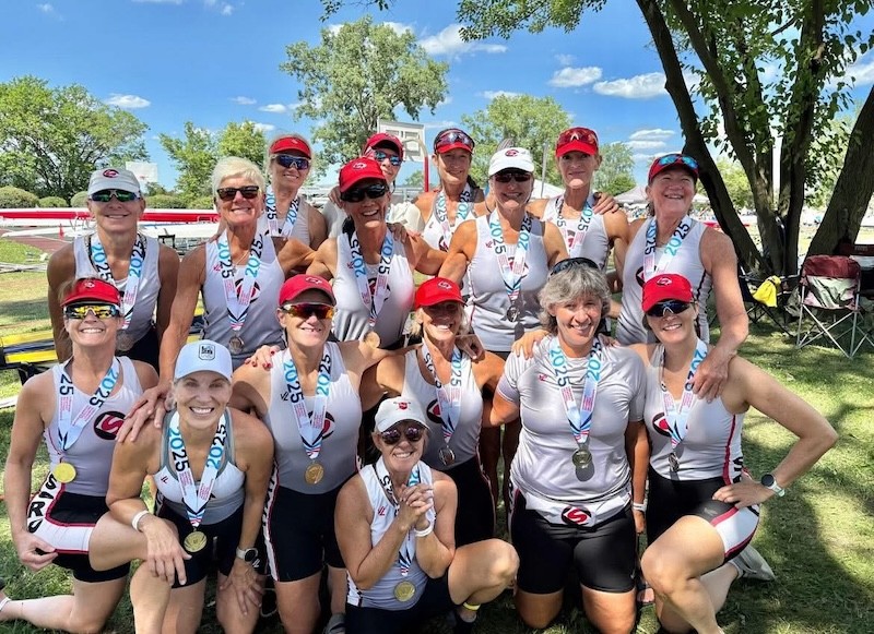 Members of the Sarasota County Rowing Club show off their medals at the US Rowing Rowfest National Championships in July. Provided photo.
