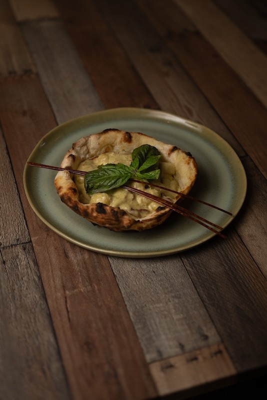 One such dish is the Bella Napoli gnocchi, one of the restaurant’s most popular entrees. The dish is served in a “pizza basket”—tender potato gnocchis, made in-house by Chef Spinnozi, are submerged in a bath of zucchini pesto, stracciatella cheese, fried speck and parmigiana, supported by a basket made from pizza dough. “Where I come from in Naples, we have what is called ‘wallet pizza’,” says Di Iorio. “You can walk on the street, fold up the pizza and eat it with one hand. That’s where we got the idea to serve the gnocchi in the pizza basket.”