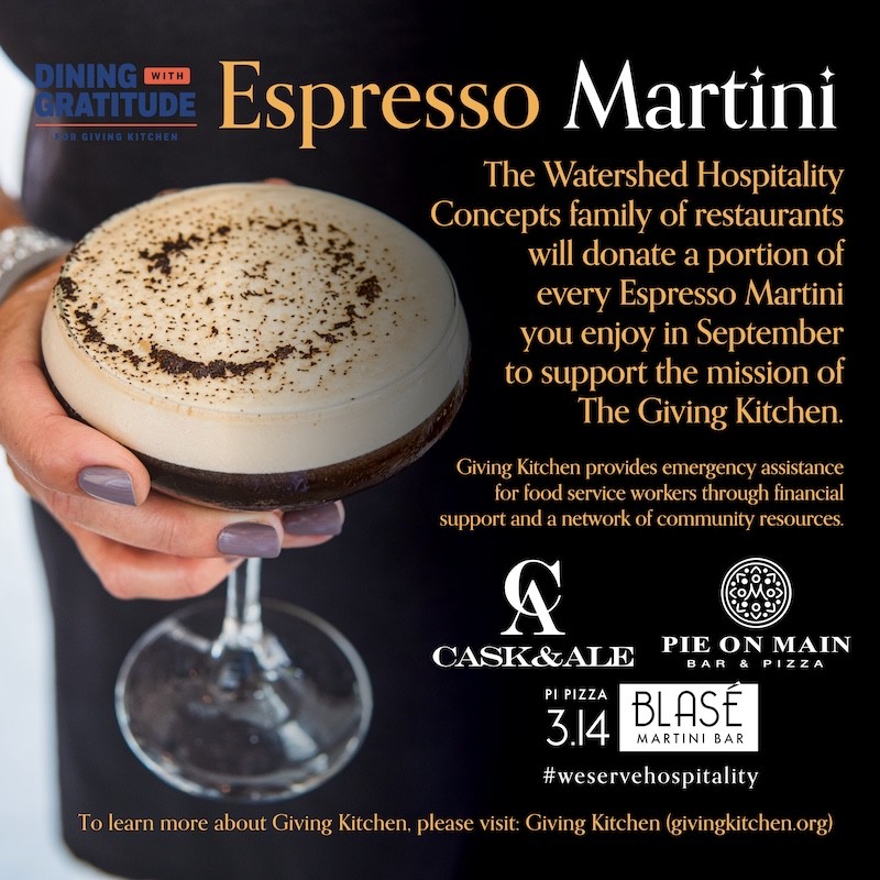 This promotion runs through the end of September, so be sure to visit any of the Watershed Hospitality Concepts restaurants to enjoy an espresso martini in support of a great cause. You can also learn more about Giving Kitchen’s mission at givingkitchen.org.