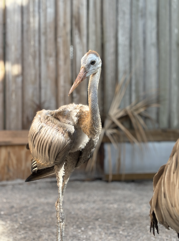 When a young sandhill crane was struck by a car at the busy intersection of University Parkway and Lorraine Road—where speed-through traffic can be common—her future seemed uncertain. But thanks to a quick-thinking passerby and the dedicated team at Save Our Seabirds (SOS), her story became one of resilience, care and reunion.