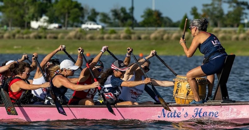 “All of us who started in that first boat were new to the sport,” says Long, the founder of Survivors in Sync and head paddling coach at Nathan Benderson Park. “For us to be able to have practices, someone had to learn how to steer the boat and I knew I had to take that on because nobody else knew how to. It just made sense for me to do it.”