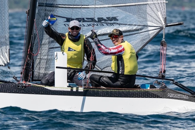 Racing their Nacra Evo El Cucuy, Sarasota Yacht Club Sailing Director Dalton Tebo recently captured the 2025 Formula 18 North American Championship title with teammate John Casey. Photo by Lexi Cline.