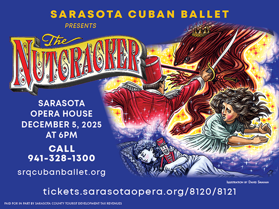 Be transported to Clara’s enchanted dream world in The Nutcracker by the Sarasota Cuban Ballet on December 5 at 6:00 pm at the Sarasota Opera House. This holiday favorite features the beloved classic choreography and the beauty of Tchaikovsky’s score, with scenery and costumes conceived exclusively for the Sarasota Cuban Ballet by a legendary theater designer. It’s a very special evening for dance lovers of all ages! Our audiences agree: “A big part of the start of my holiday season” “Joyous” “Spellbinding” “A most magical experience” “Amazing production” “Absolutely first rate” “By far the most charming of all the Nutcrackers I’ve seen”