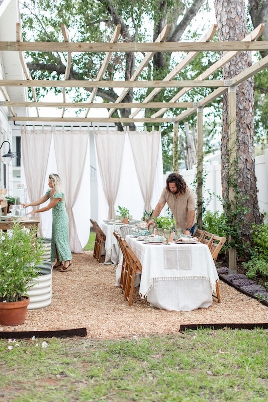 Martini has designed the cottage with a garden look and describes the space as having a natural and organic feel. Her favorite part of the venue is a pergola she had built off the side of the cottage, which serves as the primary gathering space. “We have vines growing up the pergola and above-ground planters with flowers and herbs. It definitely has this quaint, farmhouse feeling to it amongst the downtown setting,” she says.