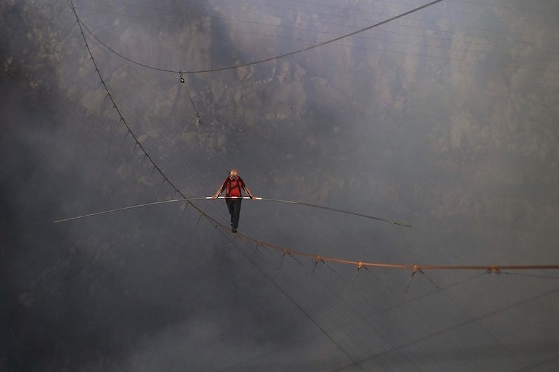 Nik Wallenda walks the high wire above the Masaya volcano in Nicaragua in 2020. Provided photo.