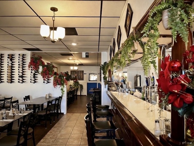 Inside, blue-and-white decor evokes the Aegean, urns cascading with greenery and bougainvillea. The space is spotless, serene. Window tables catch the light while back booths offer communal ease. “It’s not a quick thing,” Kelvi says. “You come and sit down, order appetizers and a glass of wine. Guests stay two to three hours. We don’t tell them to. They just tend to, naturally.”