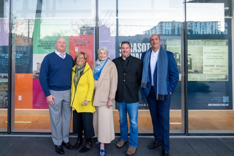 A chronology of Sarasota’s artistic history is now available for the public to see in downtown Sarasota. On January 16, Michael Saunders & Company unveiled a new public art installation, A Legacy in the Making: Sarasota’s Visual Arts History 1945-65. A Legacy is a 200-foot mural wall that can be seen through the windows of Saunders & Company’s downtown headquarters on the corner of Orange Avenue and Main Street, depicting a nearly complete history of the visual arts in Sarasota.