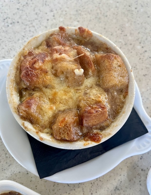 Pictured: Cheesy and delicious French onion soup at Claudie's Restaurant. Photo Credit: Sarah Emily Miano.