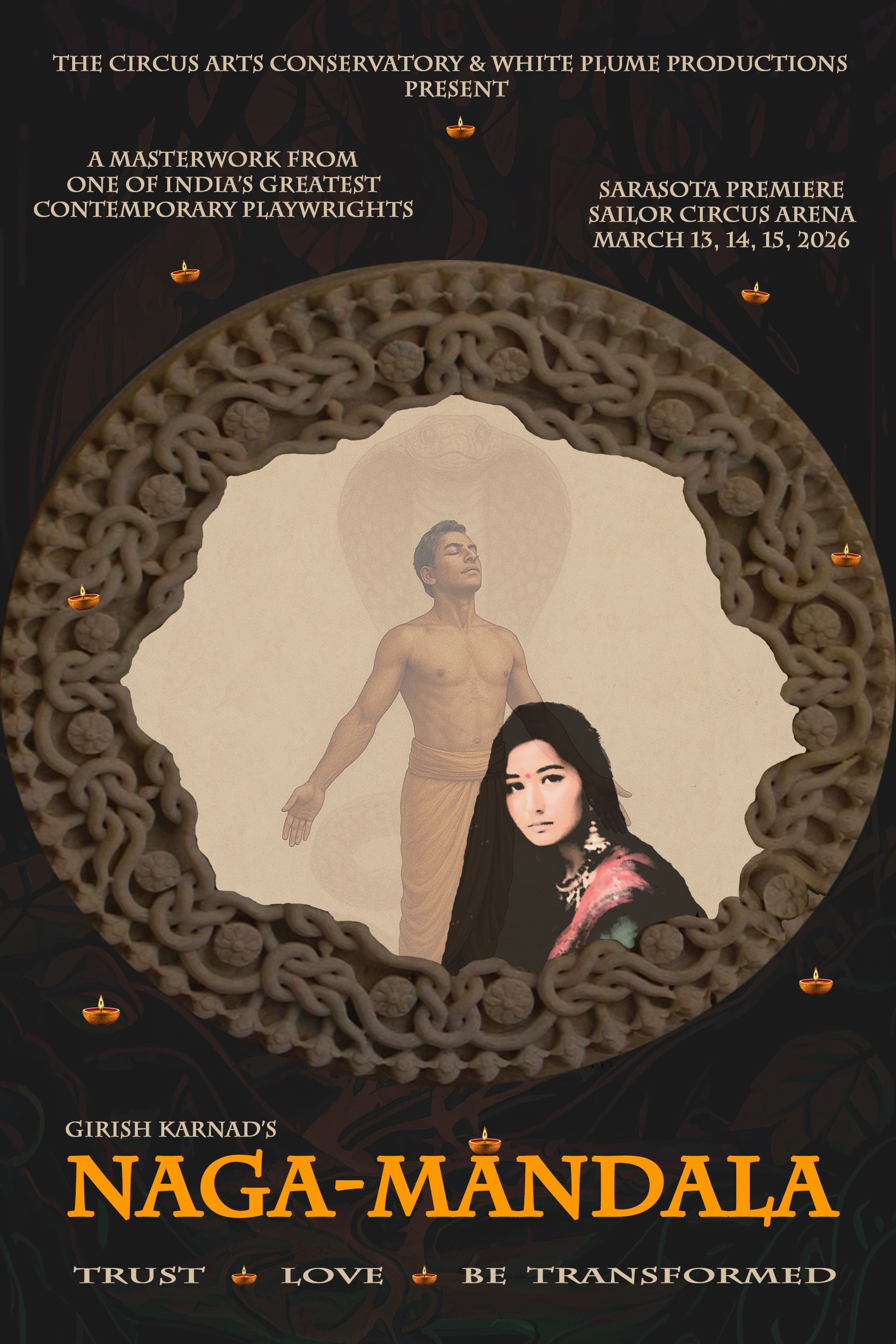 White Plume productions announces the Sarasota premiere of Naga-Mandala ("Play with a Cobra") by legendary playwright Girish Karnad. This is a masterwork by one of the foremost contemporary playwrights from India. Featuring live music, dance and theatre, Naga-Mandala celebrates imagination and transformation through the lens of South Indian folklore. This is a professionally-mounted production uniting local and international artists in a co-production with the Circus Arts Conservatory. Recommended for audiences 10 and older. Limited engagement: one weekend only.