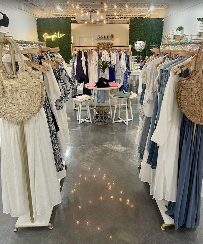 Pictured: Pineapple Lain boasts a bright, modern interior with outfits for any beach day in Sarasota. Photo Credit: Pineapple Lain 2024.